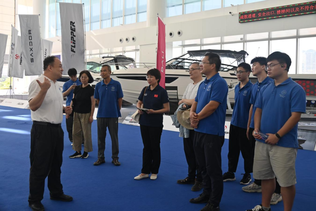 Representatives of teachers and students from the Nanhai Institute of HEU visited the wharf, exhibition hall and ship model museum of the yacht center, gained an in-depth understanding of the construction of yacht water wharves, the design and manufacturing of yachts and sailboats, as well as the history of ship development and future development trends.